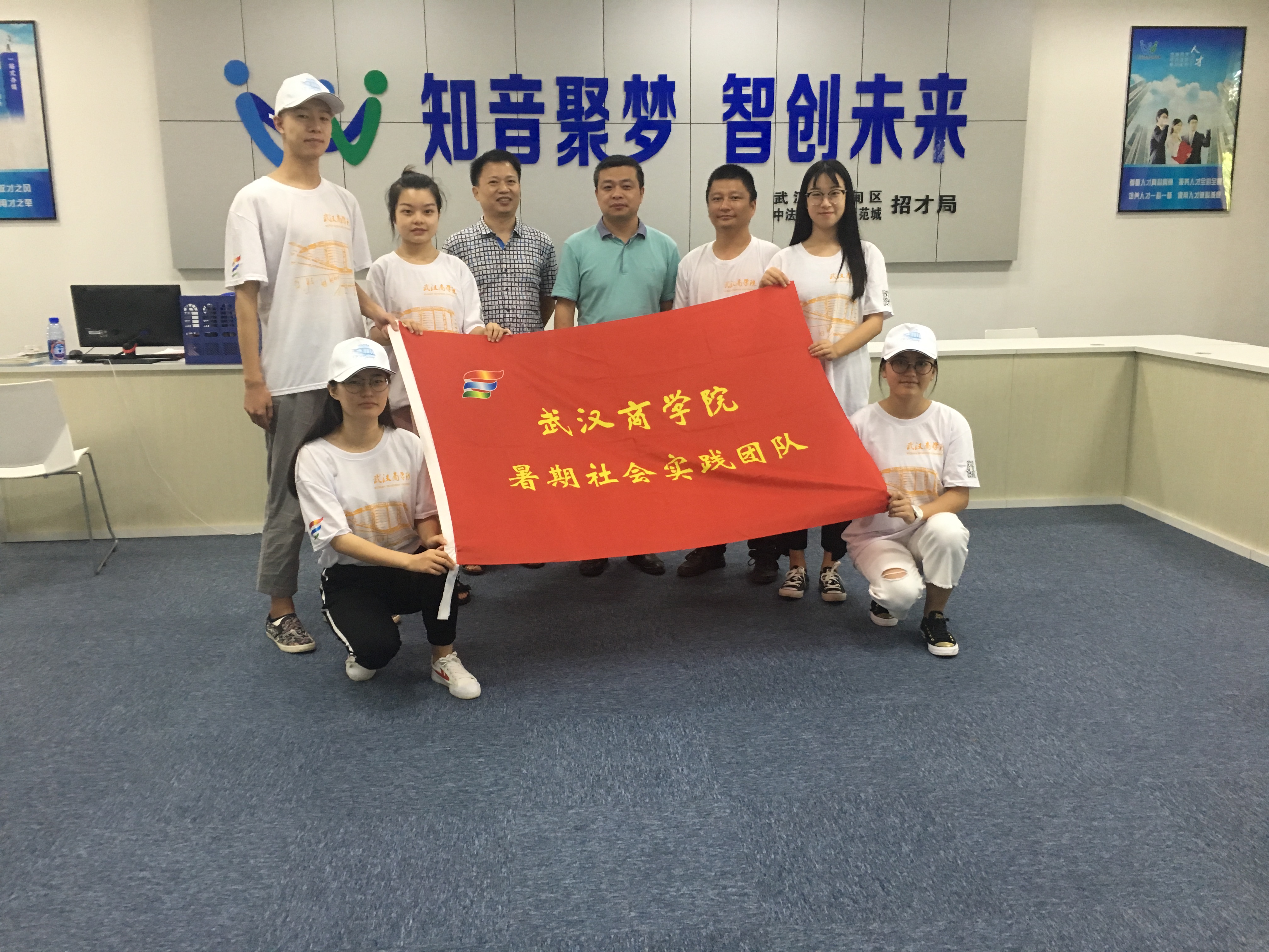 暑期社会实践团队先后调研蔡甸区招才局、洪山区人力资源服务中心等政府部门,参与蔡甸区人才招聘会,参观武汉朗数科技有限公司、武汉金力软件有限公司、武汉卓亚科技有限公司、武汉软帝科技集团、上海科匠信息科技有限公司武汉分公司和武汉厚浦教育科技有限公司等6家企业。