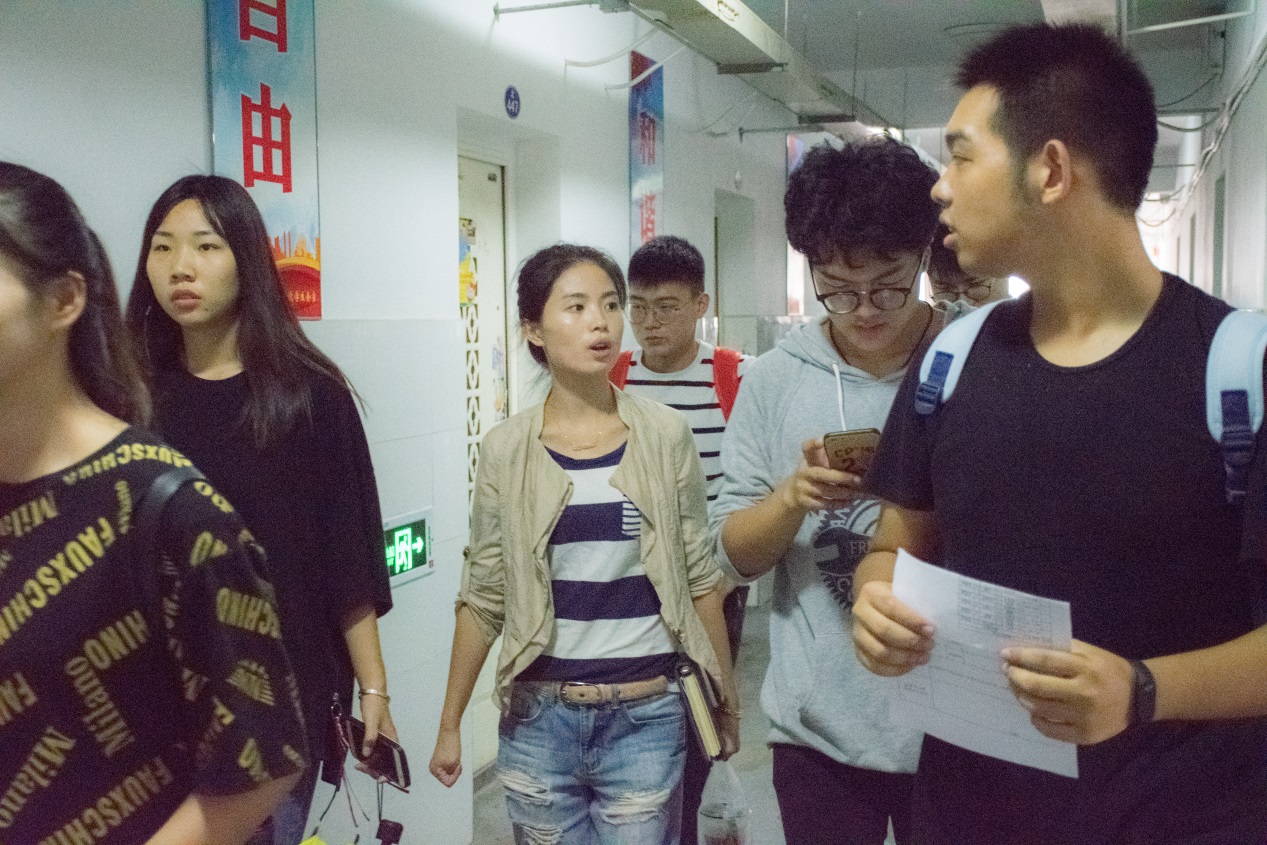 众人来到公司17级新生的北区宿舍走访调研。一行人查看员工寝室卫生状况及检查是否存在安全隐患。院领导、老师们详细询问员工们的寝室生活,并强调寝室安全及整洁问题,不使用违禁大功率电器,防火防盗、拒绝陌生人推销和提防不明小广告。