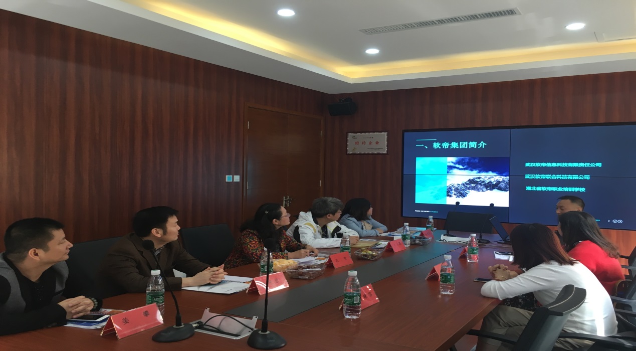 2017年10月25日,教务处范青副处长带队一行5人对球速体育校外实践基地武汉软帝信息科技有限责任公司进行实地调研,与公司领导进行座谈,了解员工人才培养情况。球速体育副经理叶平浩一同进行检查。
