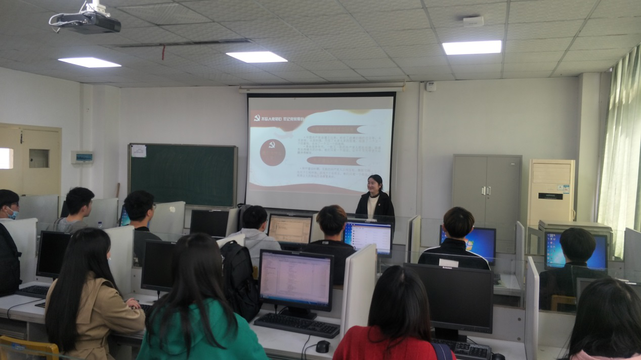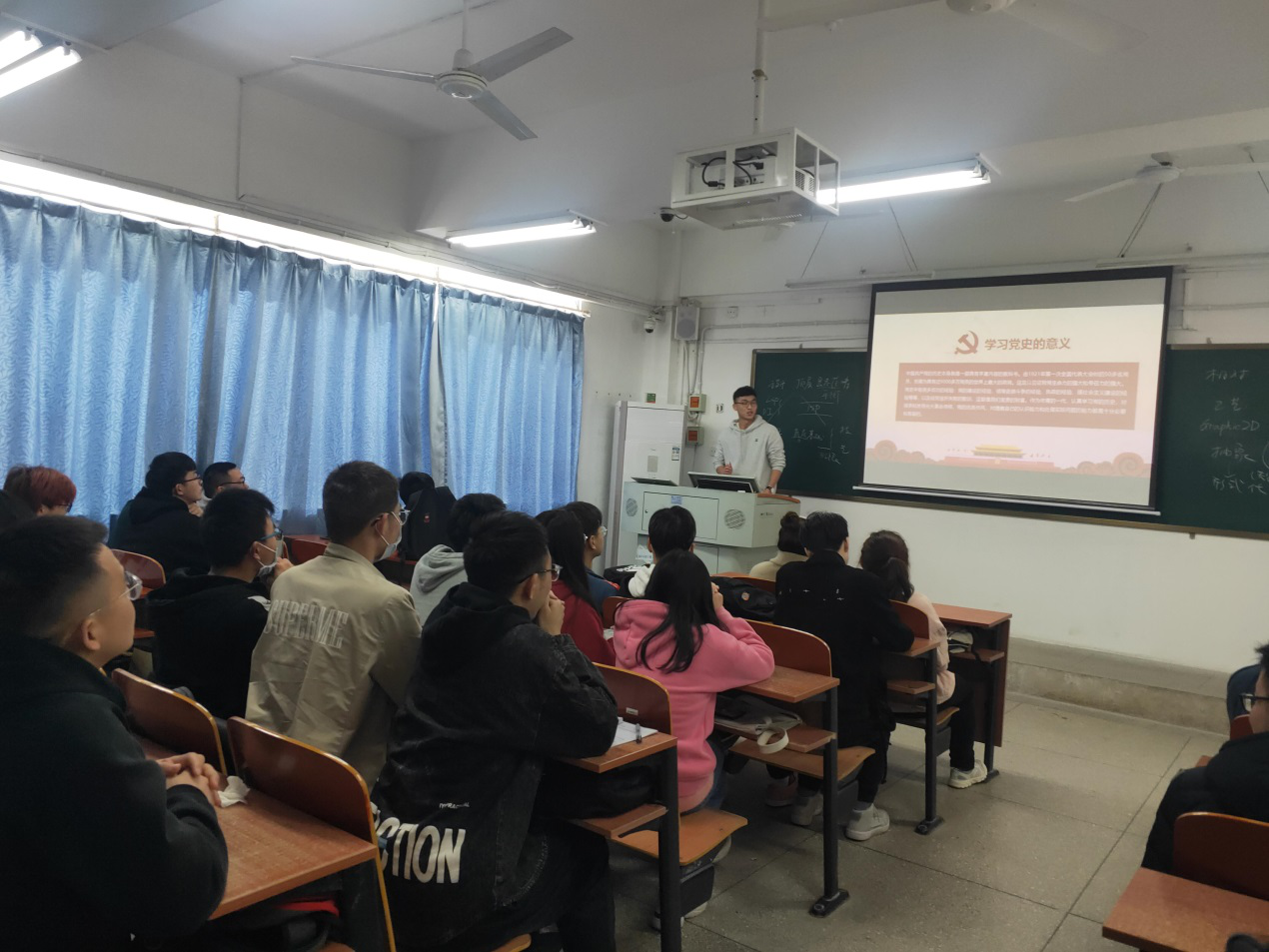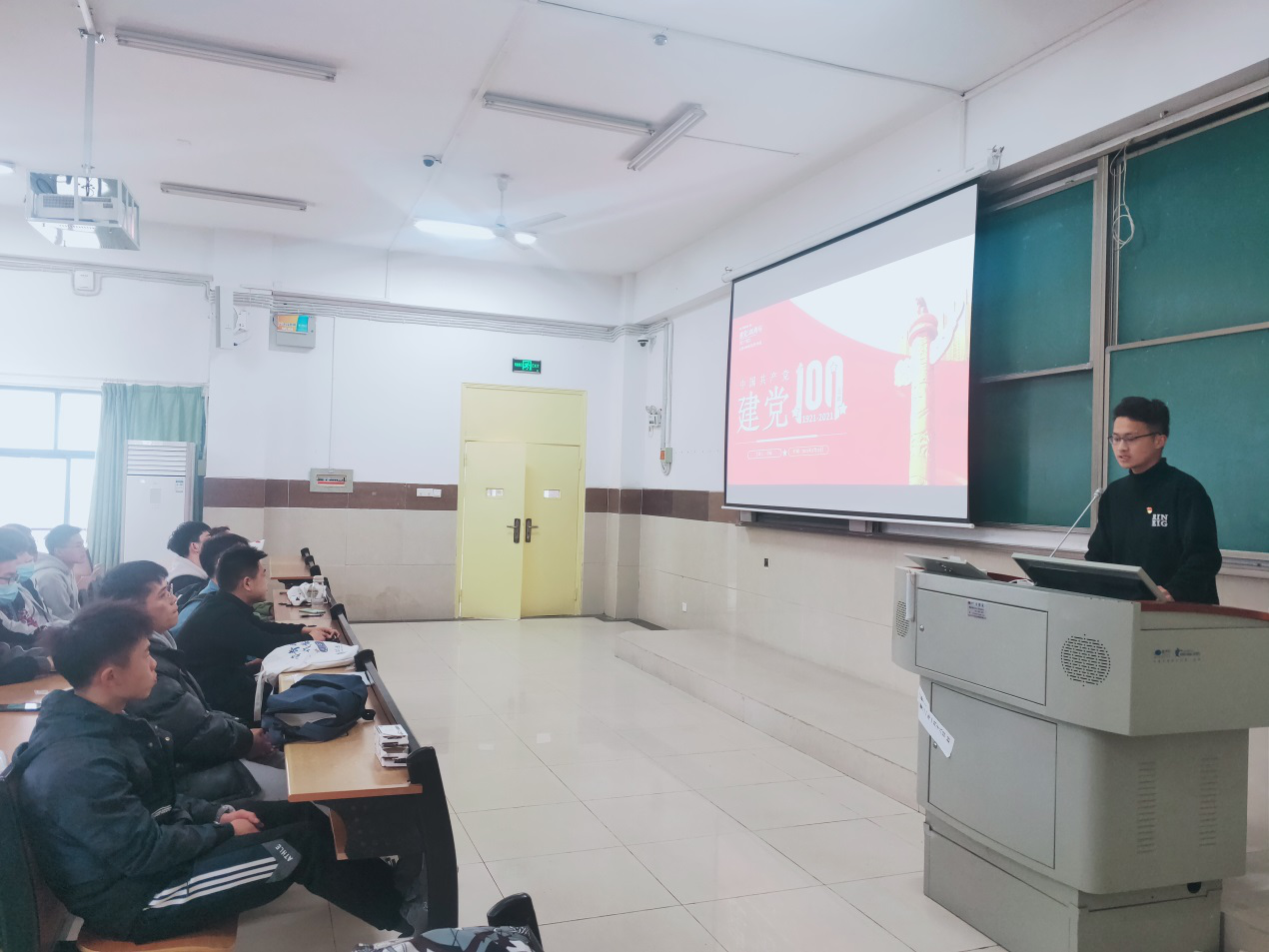 2019级软件工程(2)班员工党员邓研在南一西投202开展了《建党100周年的历程》,精彩视频的导入,在短短的十几分钟时间展现了中国共产党的奋斗历程,让同班同学感受到了奋斗过程的震撼人心,看到祖国强起来的画面,鼓掌声经久不断。