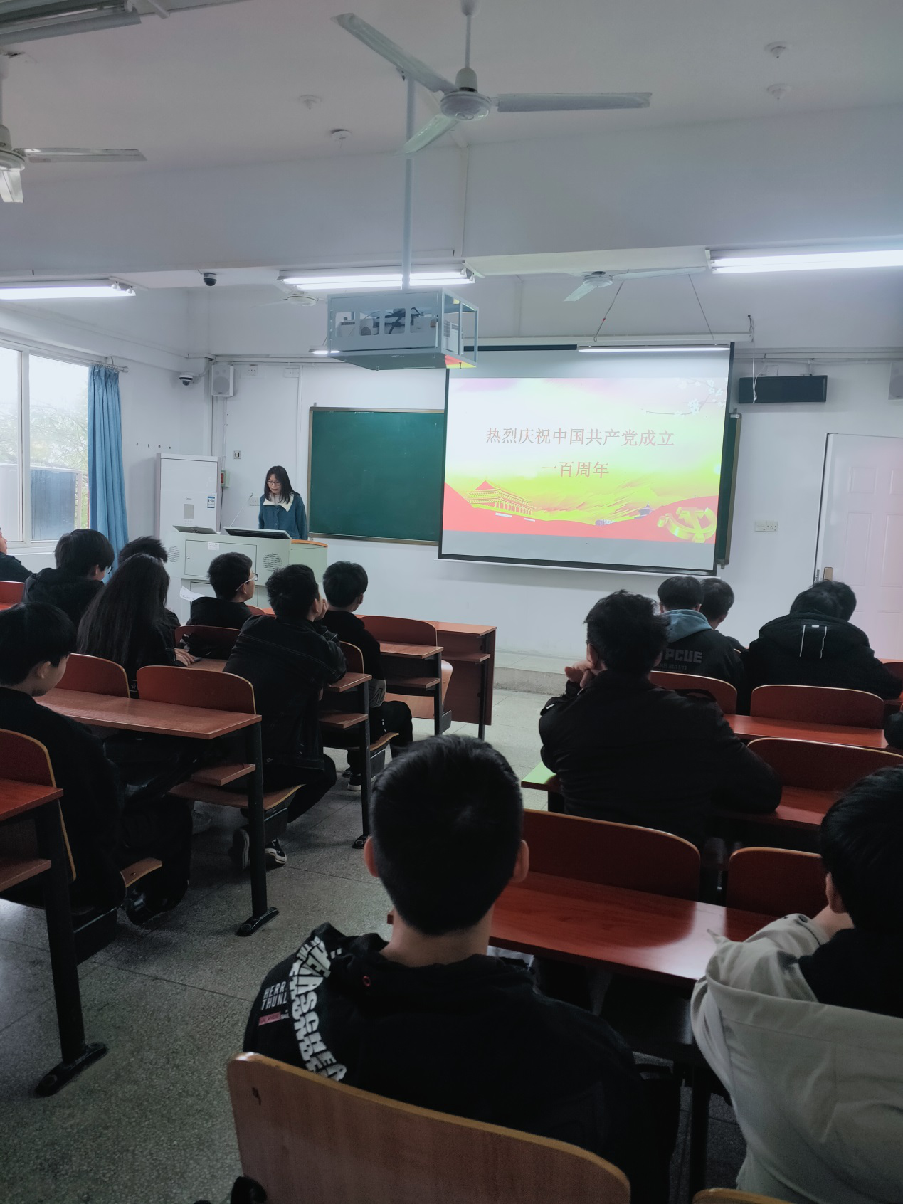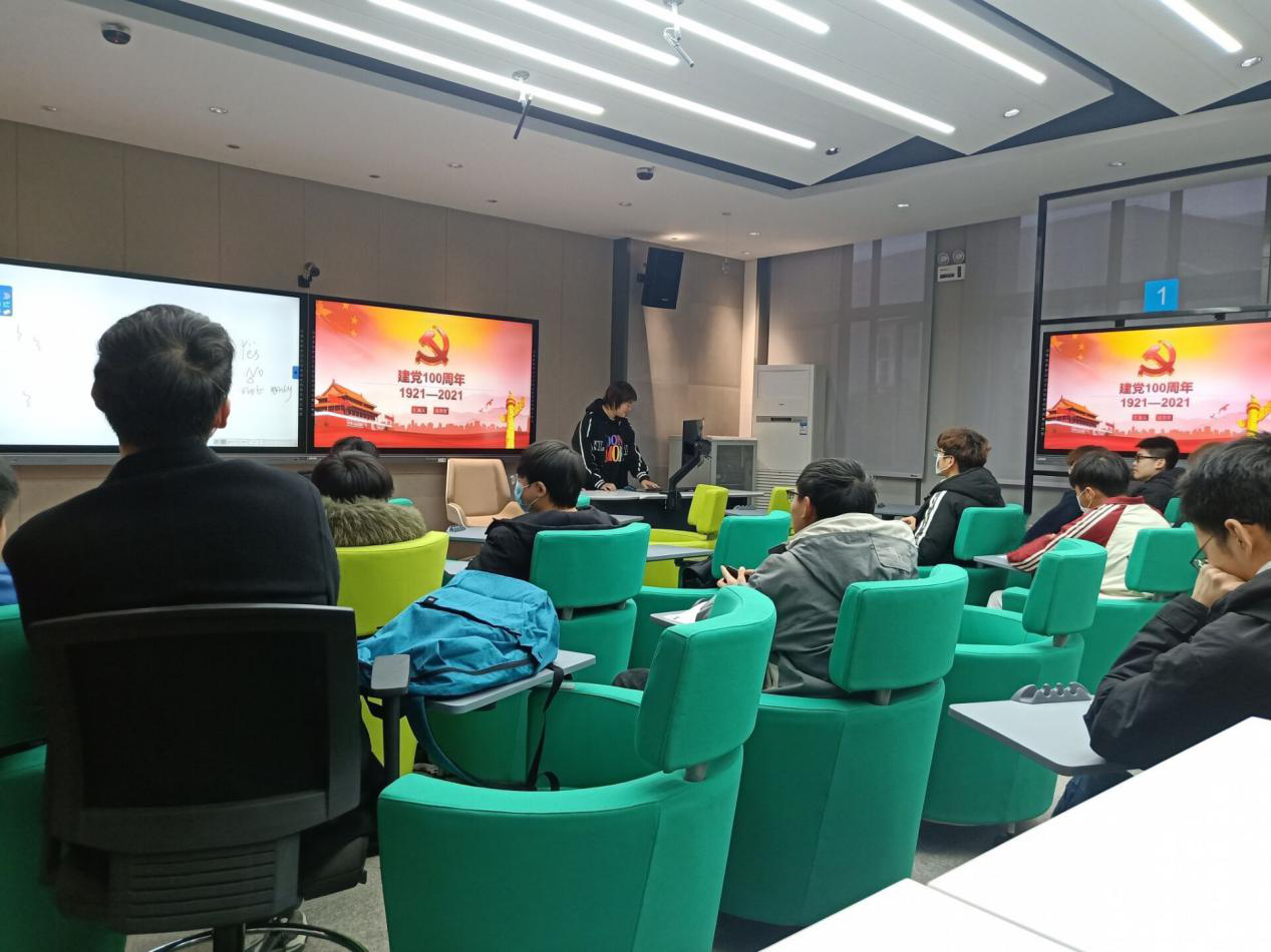 2018级软件工程(4)班预备党员范萱萱围绕《纪念建党一百周年》的主题,在北四智慧教室开展了演讲,声情并茂的回顾了党的光辉历程,讴歌了党的丰功伟绩,使团支部内的成员受到了教育,鼓舞了勇气,激励同学们继承和发扬党的光荣传统。展现了新时代青年与祖国同呼吸、共奋进的爱国主义情怀。