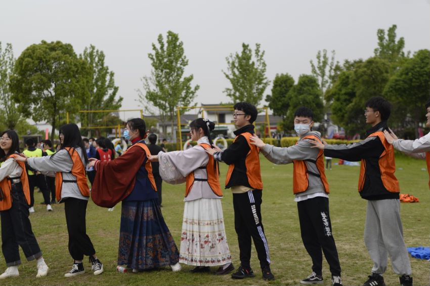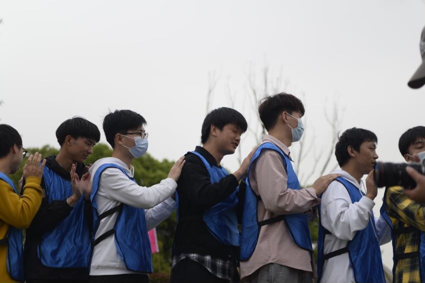 通过三个简单动作依次接力,最终喊出“我们是最棒的团队”,看似简单的活动,实则是增进团魂的最佳方式,同学们不仅要保持动作一致,更要保持声音的一致,这便要求行动快的同学等等行动慢的,而节奏落后于其他人的同学也要奋力赶上。